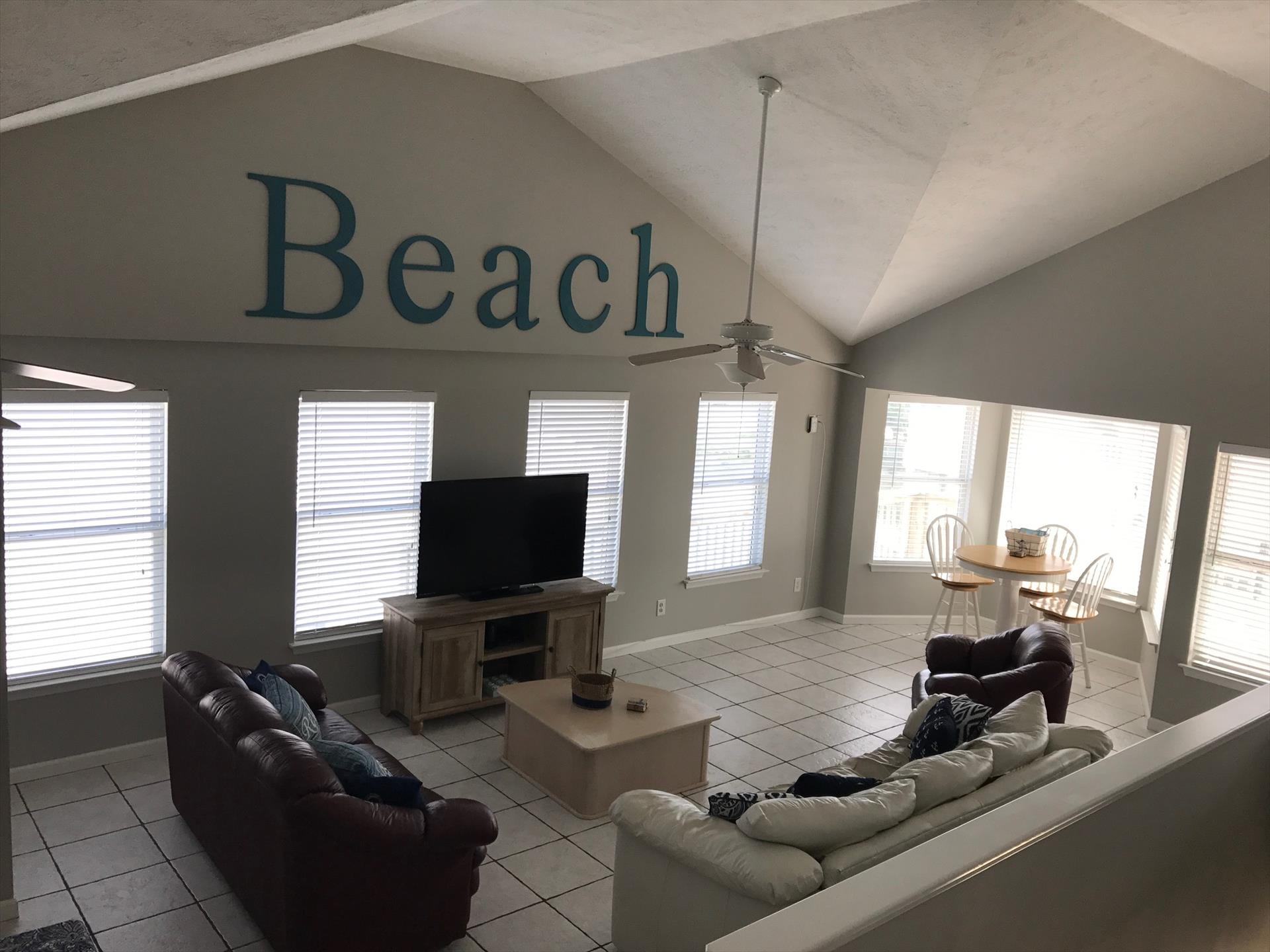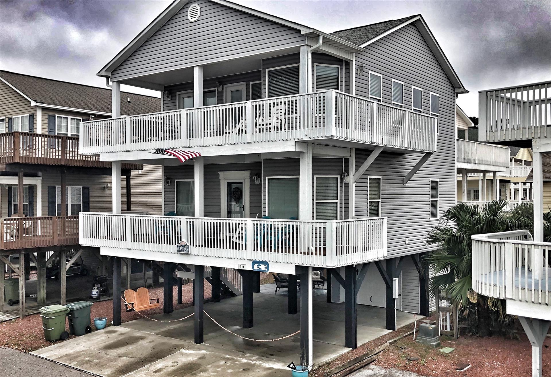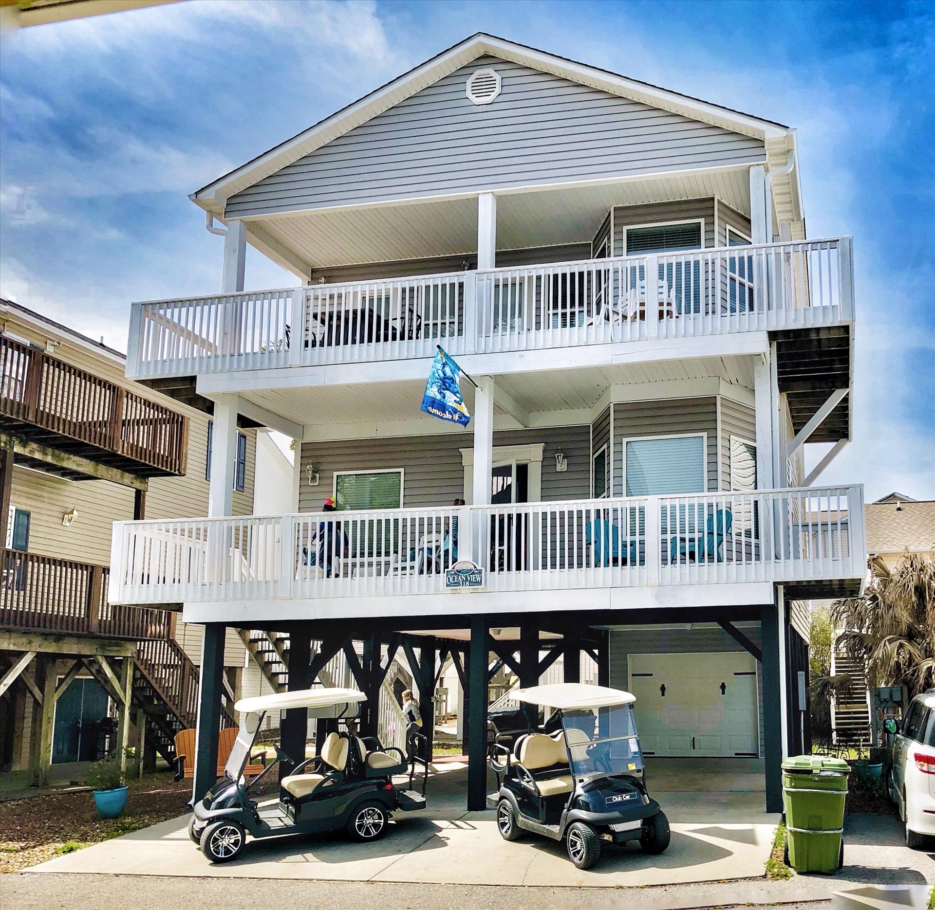 "Ocean View" is a privately owned, 1600 square foot, two story on stilts, 5 bedrooms, 3.5 bath vacation home with both lake and ocean views. Located in the family friendly 24/7 gated community of Ocean Lakes Family Campground. Ocean Lakes boasts numerous amenities including both indoor and outdoor pools with kid splash zone, recreation center, 18 hole putt-putt golf course, arcade, outdoor playgrounds, golf cart rentals, several food outlets, grocery/gift shopping store and nearly one mile of sandy beaches. All within walking distance or short, golf cart ride.